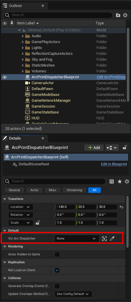 Add Viz Arc Dispatcher BP to an Unreal level.