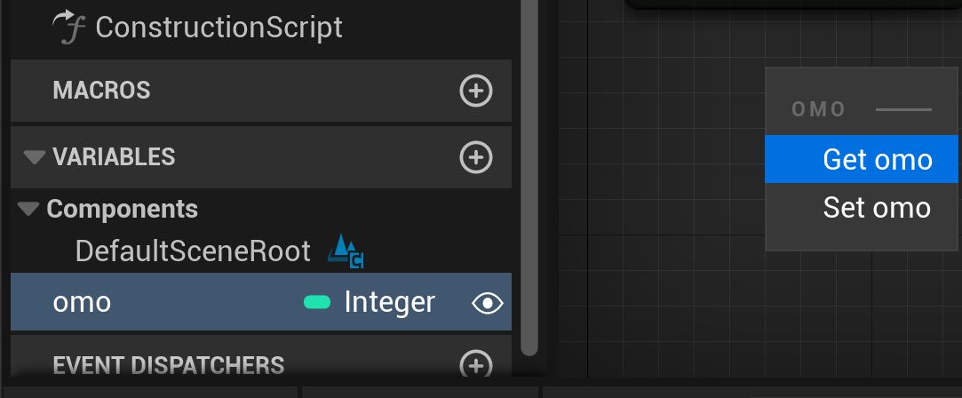 Drag and drop the omo variable to the blueprint canvas and select Get.