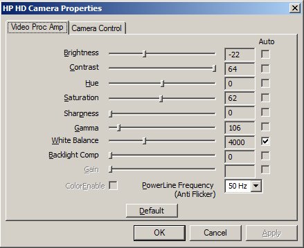 Viz Arc displays all deleted DirectShow video sources. An example of configuring an external device (HP HD Camera) connected to Viz Arc is shown below: