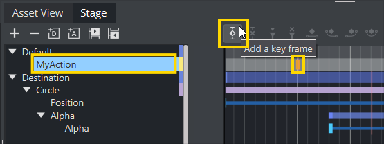 Click (Add New Action) in the Stage Tree Bar, or drag the icon in the Stage Tree Bar to a Director.