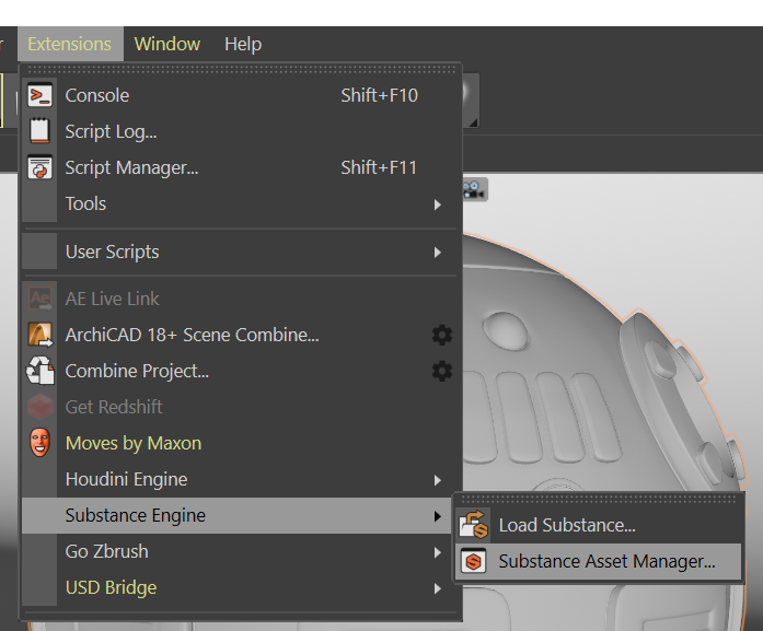 In Extensions > Substance Engine, load your SBAR file.