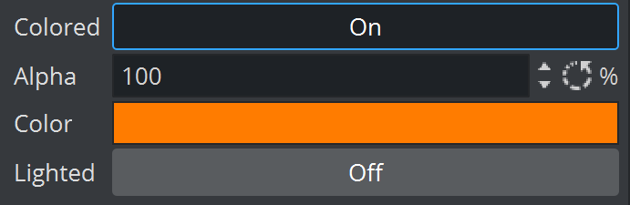 • Colored: Activates the selected color for the text as a solid color, overriding the color of any material on the text container in the scene tree.