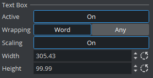 • Active: Wraps the text within a specified area of the text box when enabled. The text box is shown as an orange outline in the Scene Editor when the text editor is active (if Bounding Box is enabled in the Scene Editor).