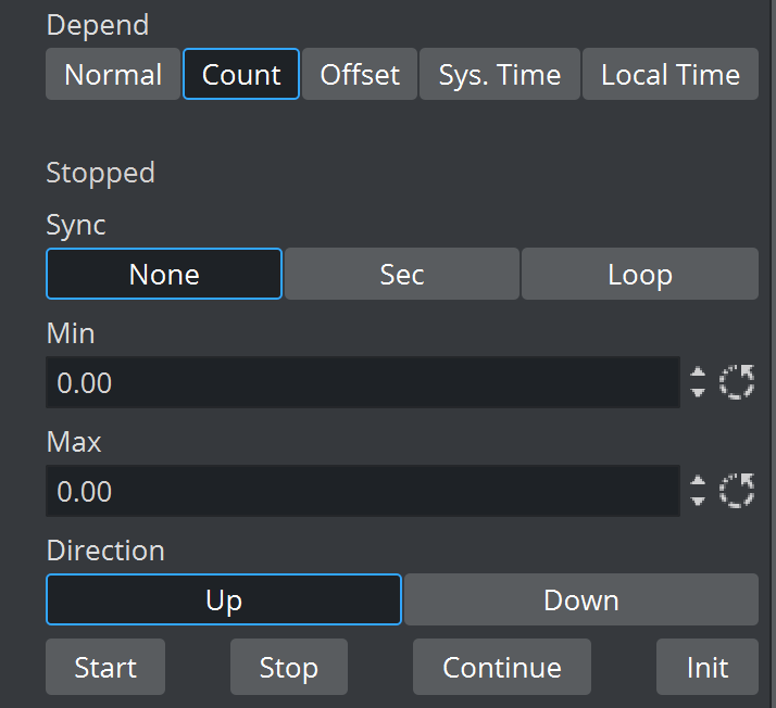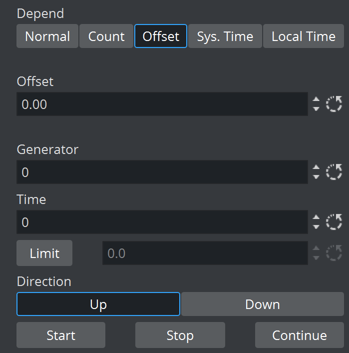 • Up and Down: (Normal/Count/Offset) Specifies if the clock should count upwards or perform a countdown.