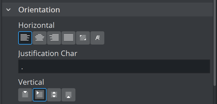 Note: Justify to Character is not supported in the Viz Engine Render Pipeline.
