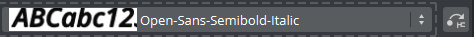 Lists all available fonts created from the same base font. To use another font, select it from the list. To use a totally different font in the scene, drag the new font from the Asset View panel onto the Font Areas of the text.