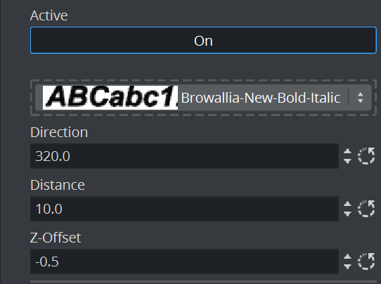 • Distance: Sets the distance between text and shadow.
