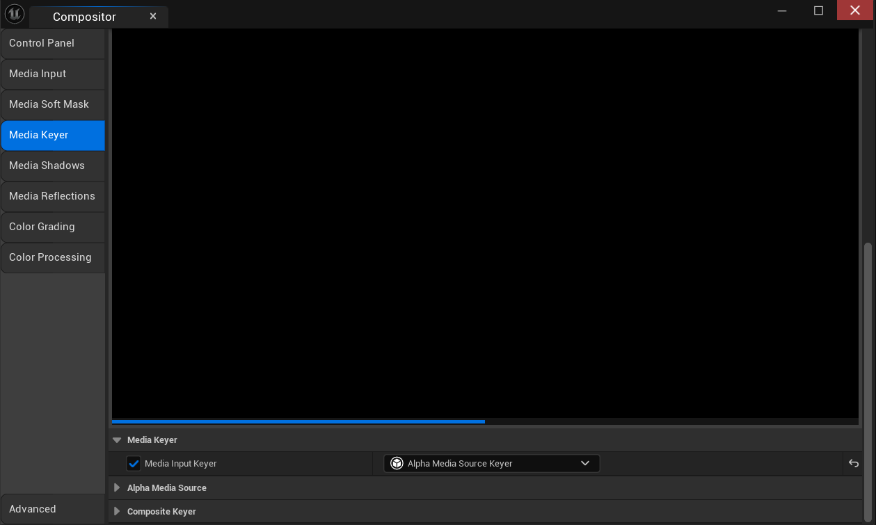 Inside Unreal Engine, set up the Compositor (Precision Keyer Compositing on UE5, section Using the Compositor Plug-in) as normal and go to the Compositor settings to select the new Alpha Media Source Keyer.