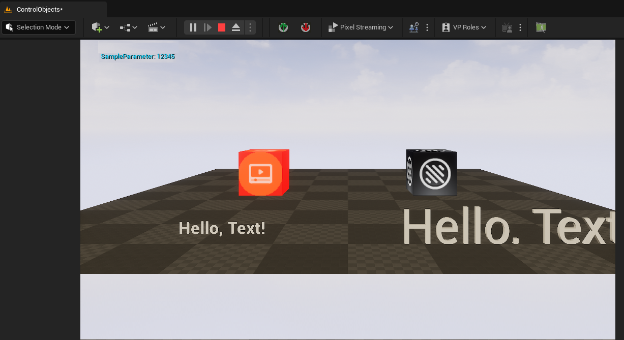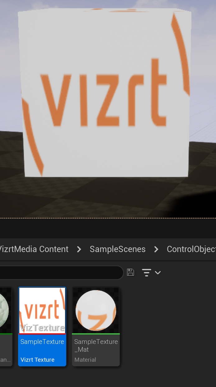 A sample Unreal Engine level is provided with the Vizrt Media plug-in. You can find it at /Plugins/VizrtMedia/Content/SampleScenes/ControlObjects.