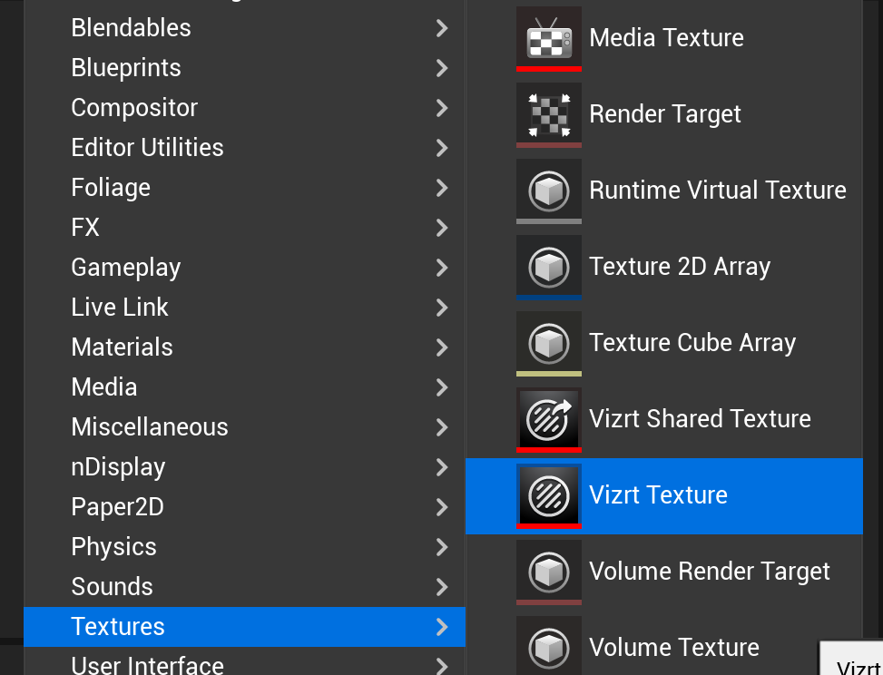In the Content Browser, right click and create a Vizrt Texture. You can rename it to SampleTexture.