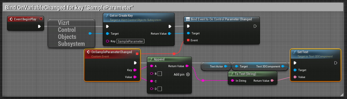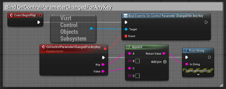 Note: Instead of listening for all ControlParameter updates, you can listen to a specific Field Identifier.The example below shows how this can be done, and use the received Value to set the Text property of an Actor.