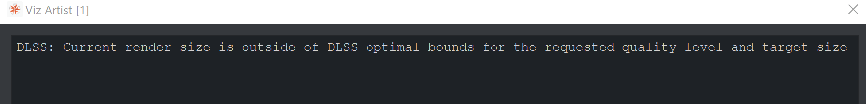 Note: If the screen percentage is outside the DLSS optimal range for the given quality mode/output format, Viz Artist displays a log message.