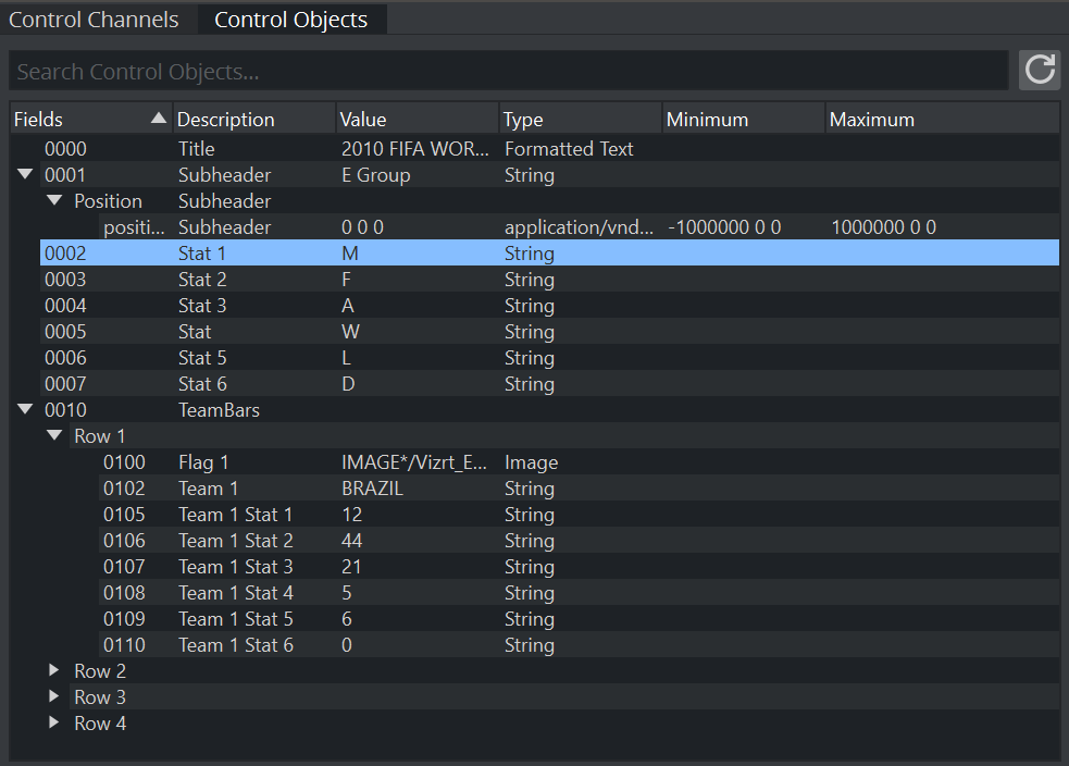 • Control Objects: Shows exposed parameters when a Control plug-in is used (for use with Viz Trio only).
