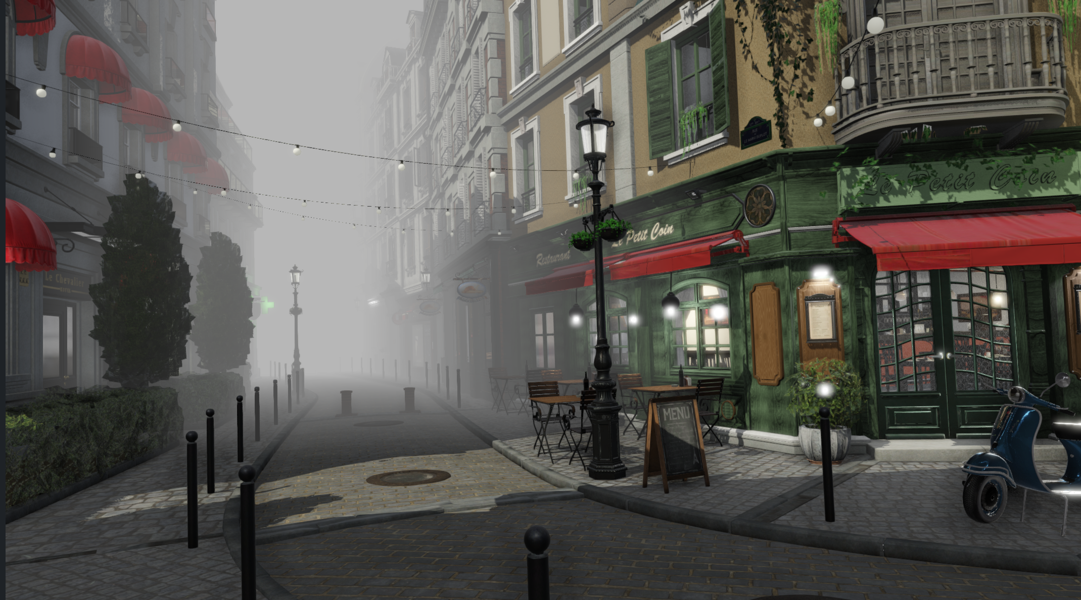A Fog adds depth to the scene. It represents dust and dirt in the air at a given distance. The Fog effect is located in Scene Settings-Rendering inside the Post Processing effects.