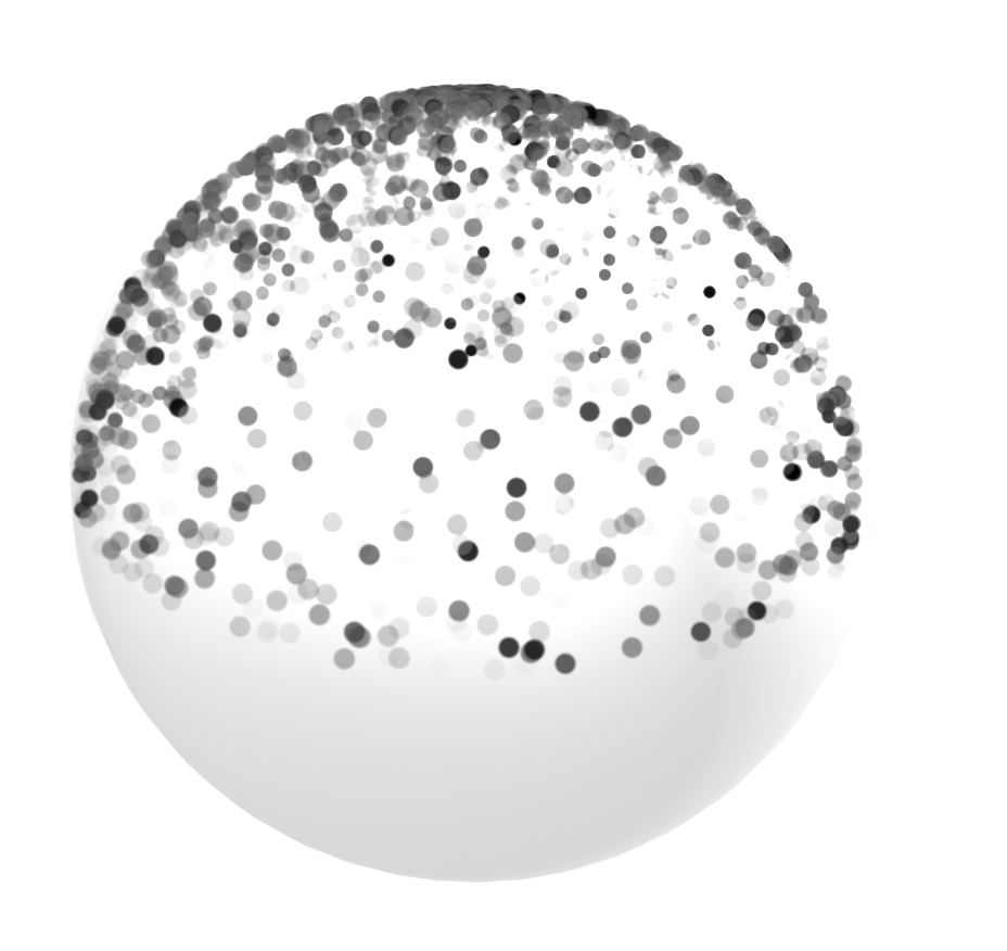 Sphere | Particles are generated inside a sphere (polar range 90), aligned to the faces | Particles are generated inside a sphere (polar range 90), aligned to the faces |