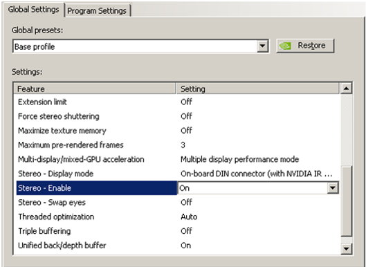 In the Windows video board 3D settings, Set Stereo - Enable to