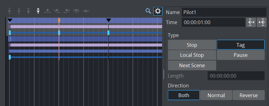 4. In the appearing editor enter Name as pilot1 (case sensitive), and set Type to Tag. When previewing using a remote (external) Viz Artist/Engine preview, either from a newsroom system, or when connected to a Media Sequencer with a control application, the pilot1 tag is the default preview point for the object scene.