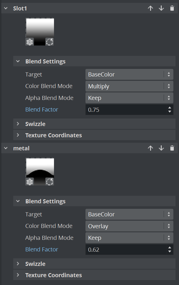 Texture Slot allows to use up to eight textures to be blended directly into PBR or Phong materials available in the Viz Engine Render Pipeline.