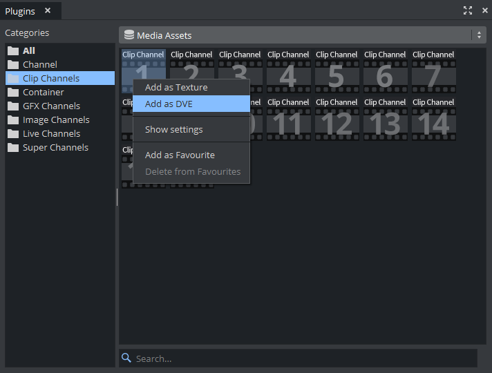 Click on Plugins / Media Assets / Clip Channels.