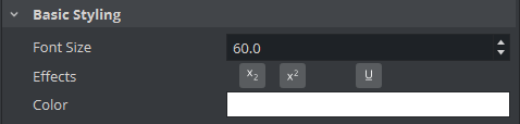 Applies a color and alpha to the selected text. Without any material, the text is rendered with solid color chosen from this option. When using text with a PBR material or a Phong material, the base color of the material and the text color are multiplied by their RGBA values.