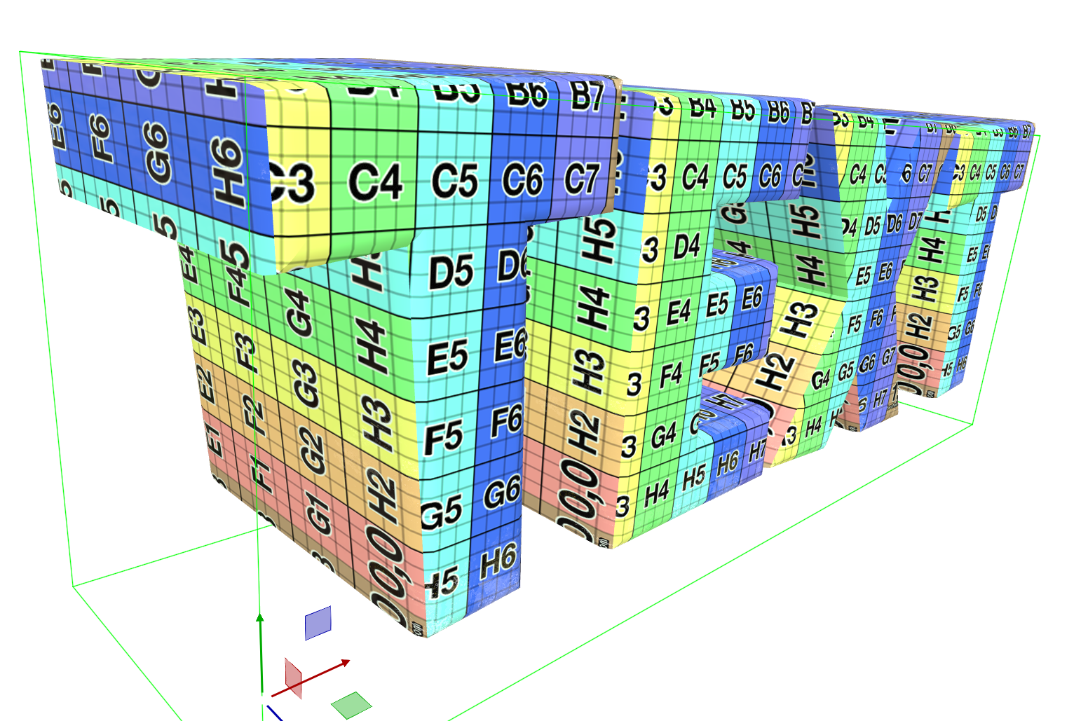 If text geometries are going to be extruded and textured, it is recommended to turn on Cubic Mode. This generates the correct UV coordinates to allow textures to be correctly placed on extruded text objects.