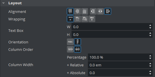 Sets how the text align in relative to the text box defined in the Layout section.