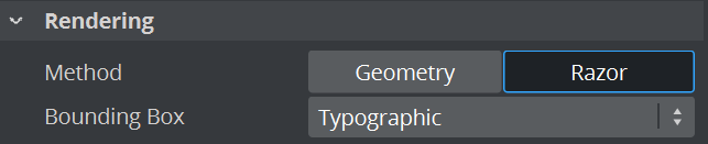 Razor: Renders the text as vector graphics on flat plane. Selecting this option enables Razor tab.