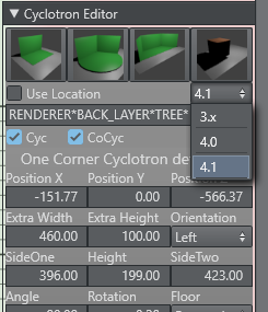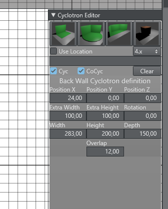 The new geometry plug-in Cyc is responsible for rendering the special geometry needed to represent a back wall, one corner and two corner cyclotron. It is now possible to define an overlap size, which blends the hard edges softly into the key.