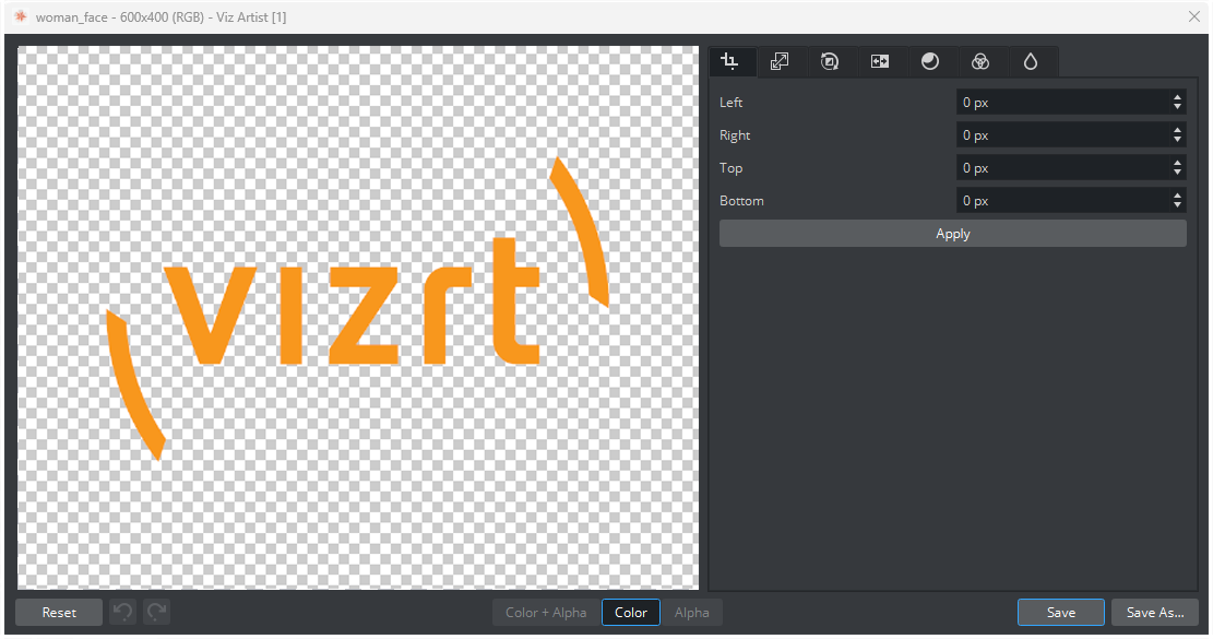 When the image editing is done, use the Save or Save as... button to reimport the image or press the Cancel button to cancel the operation.