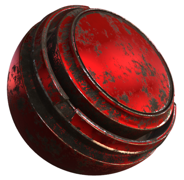 The emissive component defines the areas and color of any light hit by the object and reflected again. Substance Painter can also export an additional emissive texture. If you want to add some blooming effects afterwards, the emissive map can define these highlight areas.