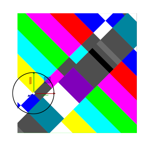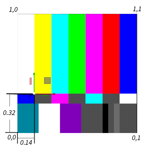 Example: Rotation a texture on a Pivot point: The coordinates of a textures are 0,0 in the lower left (U) and 1,1 in the upper right (V), therefore if the pivot is set (as in the example below) to 0.14 in U and 0.32 in V, the rotation would look like this: