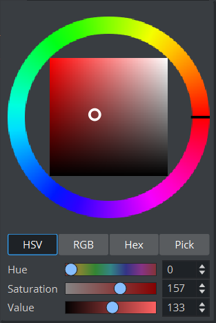 Tip: For RGB only: Right-click on the color sliders and drag to lock all three sliders, so that all values can be changed at once.