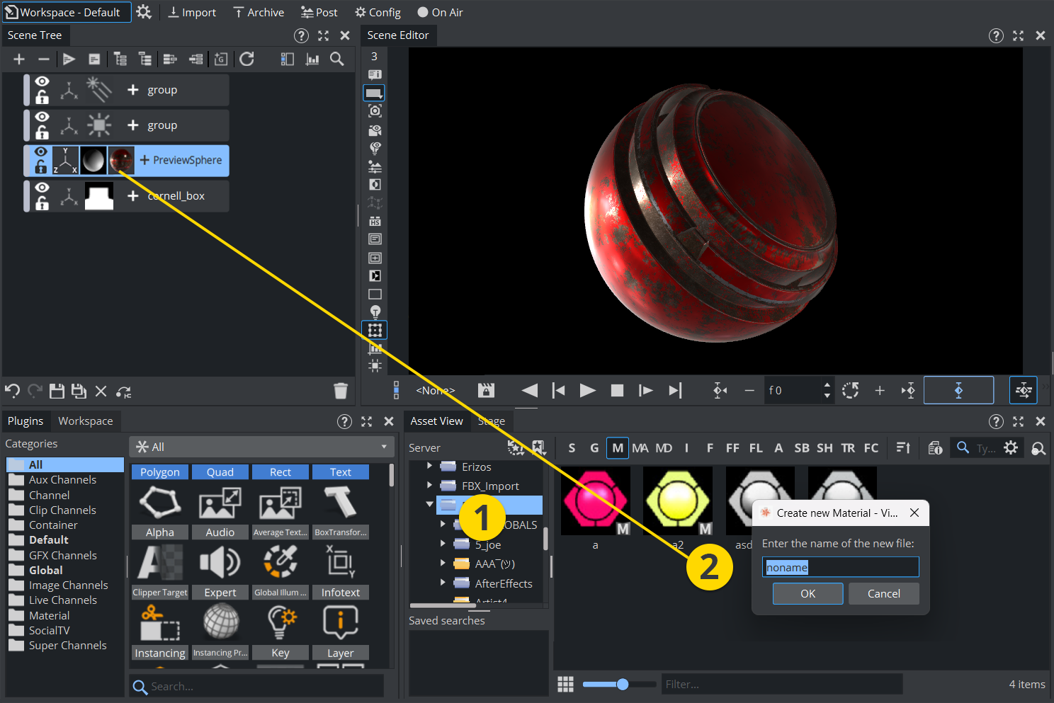 Save your Viz Engine Shader to Graphic Hub by dragging it from the container (2) into the Asset view (4).