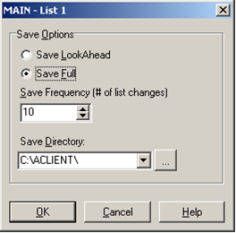 4. Save LookAhead: (Default: enabled) Check to enable save of the LookAhead list only.