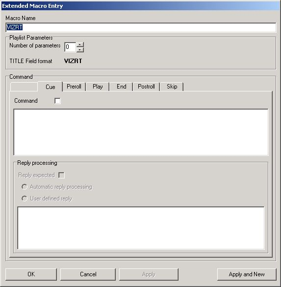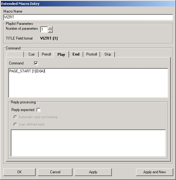 • TITLE field: macro_name:trigger_id (Media ID). For example: VIZRT:MCP2