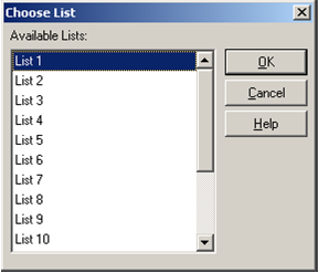 3. Select a list from the Available Lists pane and click OK. The Save Options dialog box is displayed.