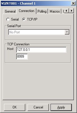 7. In the Connection tab, insert Media Sequencer machine’s IP/Host or Serial value and the Port (for TCP) as configured in channel settings for TCP or VDCP device settings.