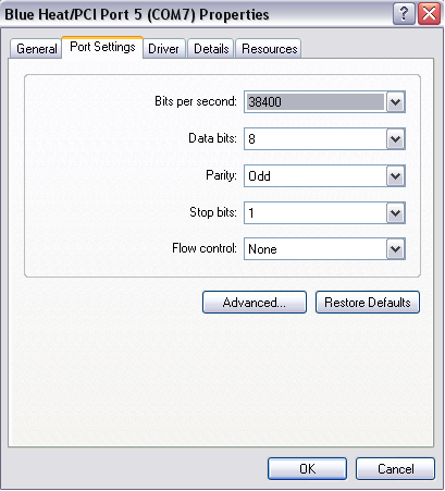 • Make sure the COM port used has the following suggested parameters under Windows Configuration on the Media Sequencer machine: