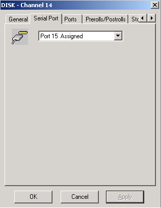 The standard configuration of triggering by a serial connection is using Video Disk Control Protocol (VDCP).