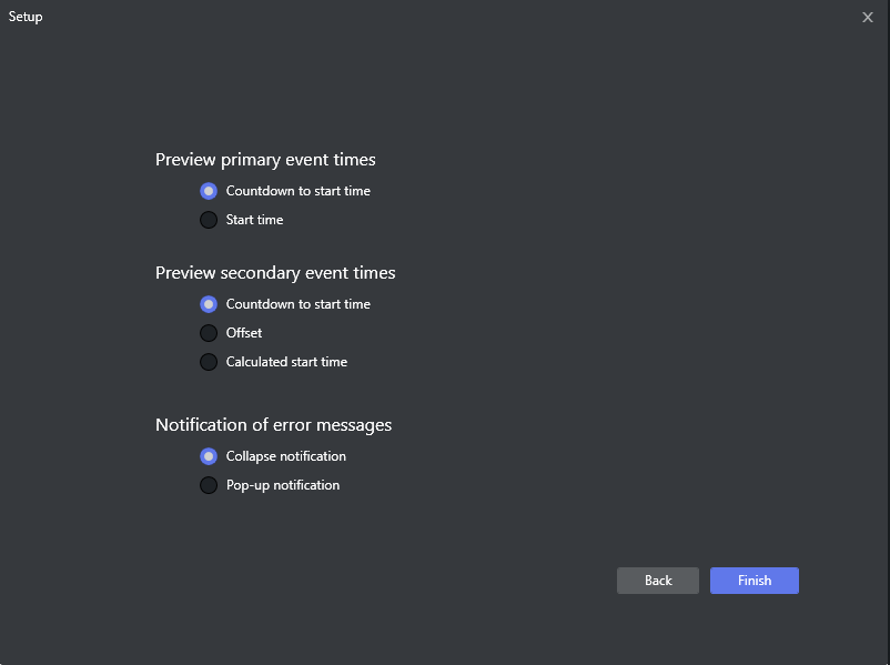 Calculated start time | Static time display based on playout "Start Time" + Secondary event "Offset" Format: Datetime based on System settings eg.