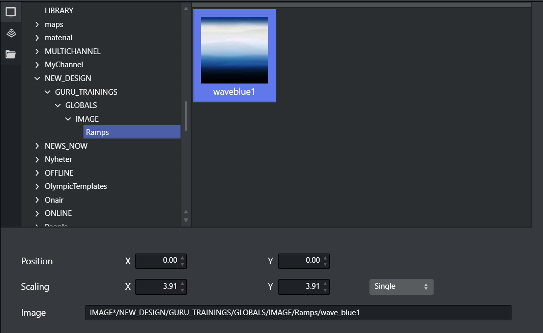 It is possible to adjust the position or scaling of an image, this adjustment can be verified in the Scene Preview Player. There are three options when adjusting scaling of an image: