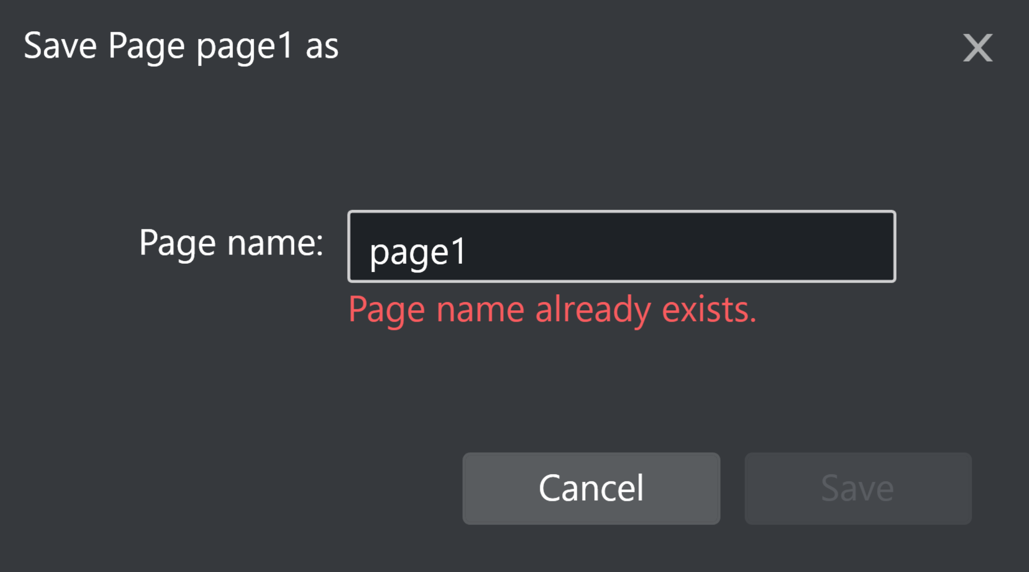 • Save as: Saves all the changes to a new page. A pop up a dialog window is presented to submit a new page name.