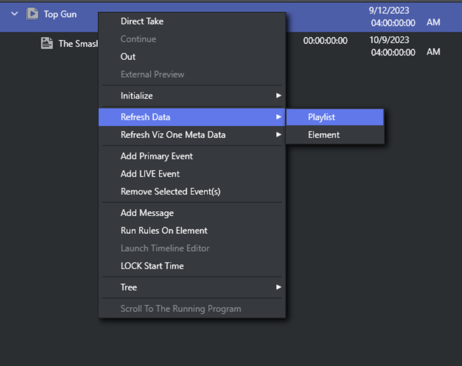 • Refresh Viz One Meta Data: forcefully re-read metadata from this event in Viz One, if applicable, and generate Event Meta Data from it.