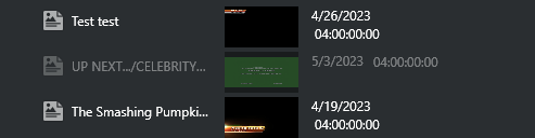 • Enable or Disable Element: Only for secondary events. Control enabling/disabling of secondary element. Elements in the playlist that are disabled are shown with a grayed-out style, as illustrated below: