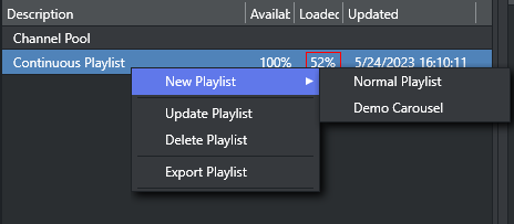 The Channel Pool playlist is used for those elements that may require special handling, such as a series of animated logos, an advanced trouble slide, or a specially pre-prepared legally mandated breaking news event. These elements can be accessible to and used by external control applications in order to trigger elements that are not scheduled in a normal playlist, for example.