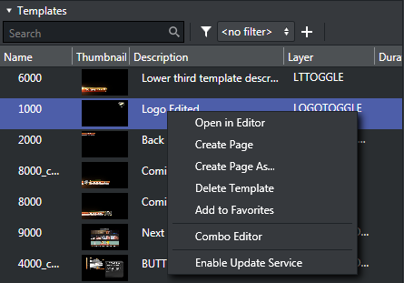 For more detailed information, see section Combo Page Editor.Enable Update Service: Enables you to assign an Update service for the selected template.