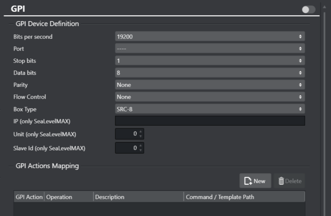 GPI is a type of trigger that does not relate directly to a playlist event. A list of commands allows you to define what happens when a playlist is received from an external device.