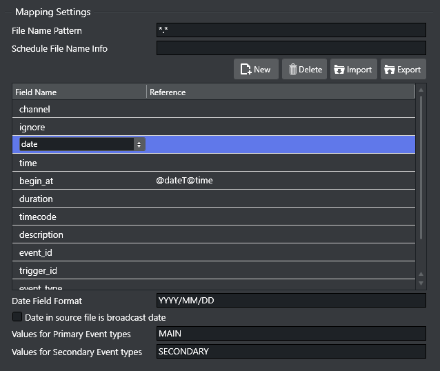 • Date in source file is broadcast date: Check this box if the date in the source file is the same as the broadcast date. Otherwise, leave it unchecked.