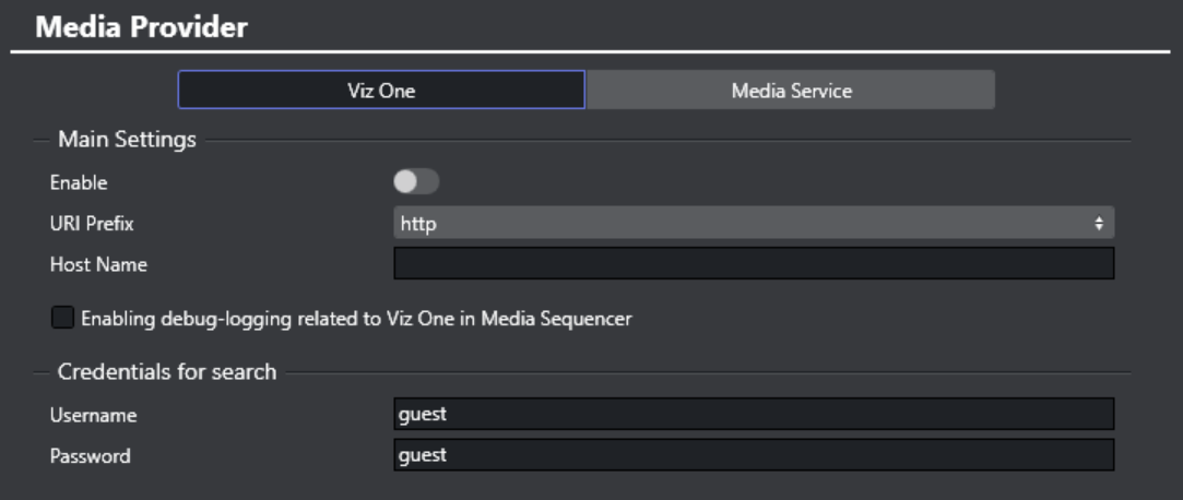 These global Viz One settings are used by all channels sharing the same Media Sequencer, and define the Viz One connection to the Media Sequencer.