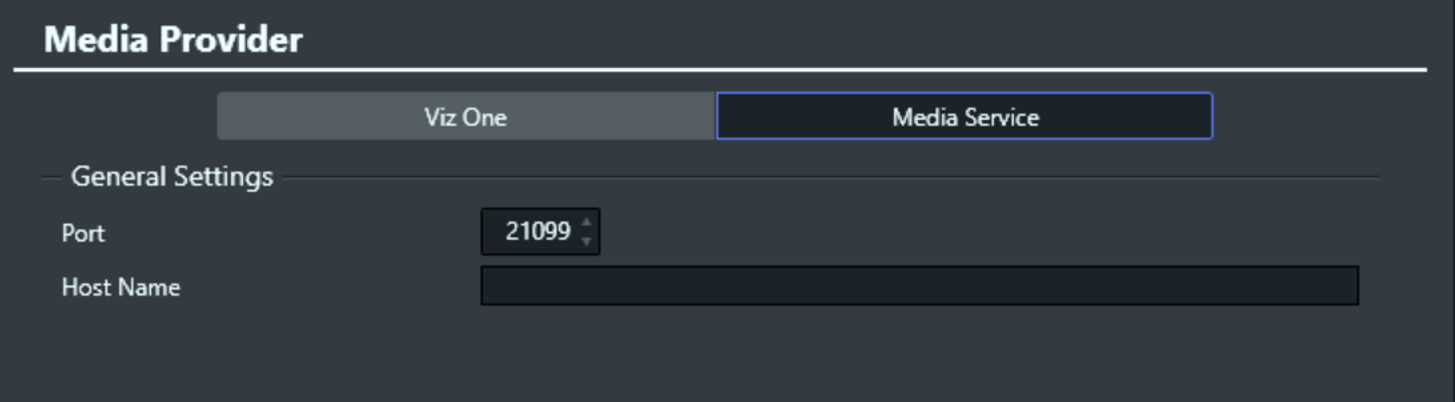 Media Provider is a simple REST-based service enabling operators to search and use video resources from a Viz Engine clip folder. The Media Provider standard TCP/IP port is 21099. The port-number is configurable and must match the IP port used by the Media Service server.